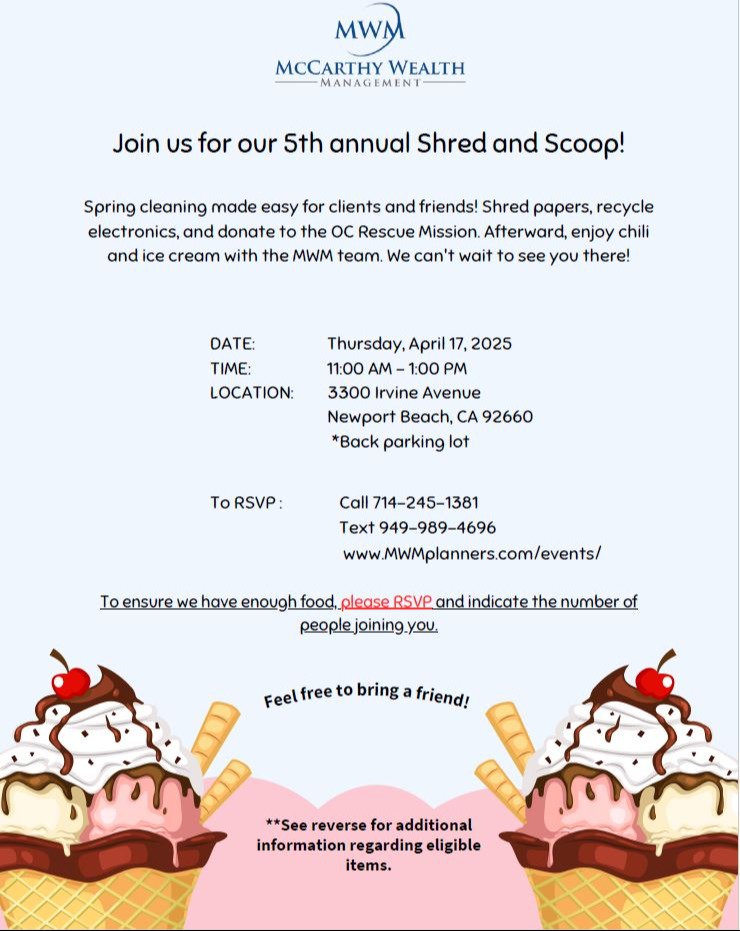 And the best part? Even if you don’t have anything to shred, come for the delicious chili and ice cream! It’s a perfect day to bring your family and friends, have fun, and give back.