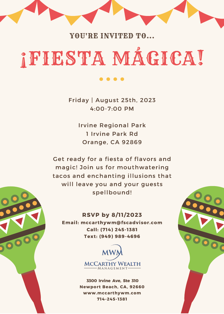 Come join us as we enjoy freshly made tacos from the grill, performances by a strolling magician, and other fun activities all set in the beauty of the outdoors! Please feel free to bring your family and friends.