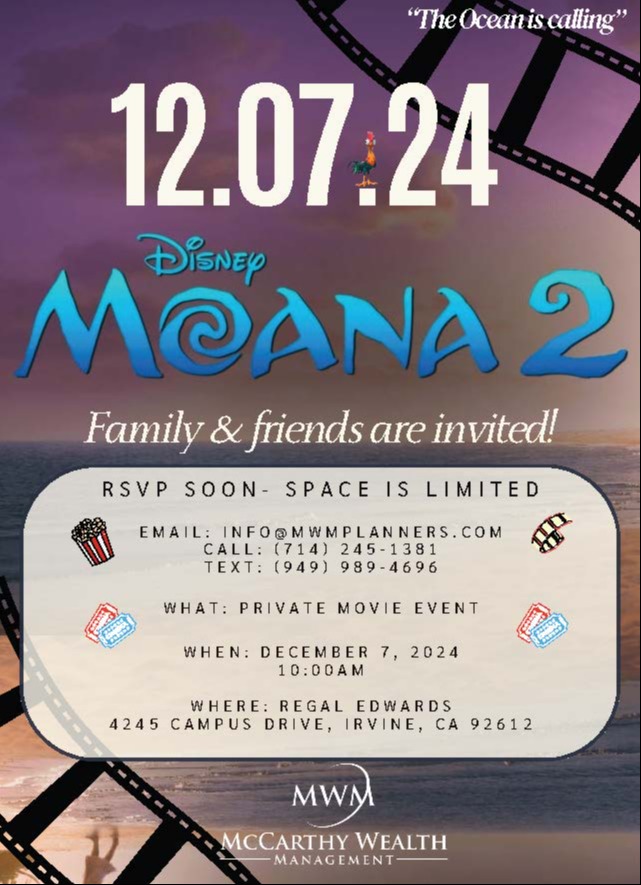 We are thrilled to invite you to a private screening of Moana 2! Join us for one last family fun celebration of the year. Feel free to bring along family and friends.